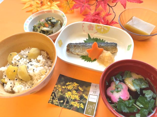 秋を代表する魚の「秋刀魚」をはじめ、栗やサツマイモを使用し秋の味覚たっぷりの献立を作成しました。旬の食材をお楽しみください。