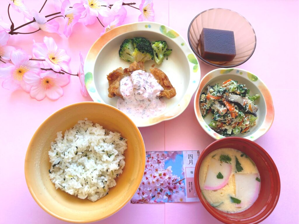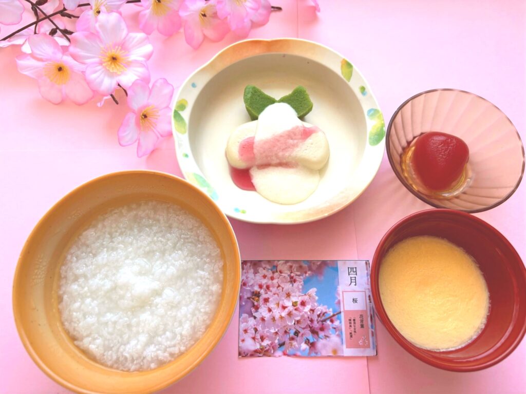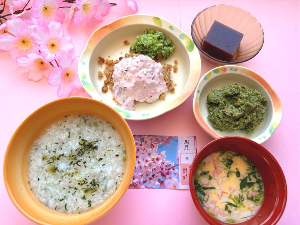 春らしさを感じていただけるよう、彩りや盛り付けを工夫し、見た目にも楽しめるお食事に仕上げています。季節の食材も取り入れ、やさしい味わいのメニューとなりました。